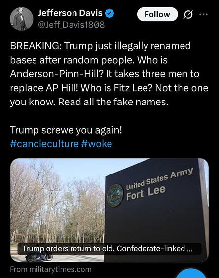 Thank you President Trump for bringing back our Great Southern Heroes names-!!!