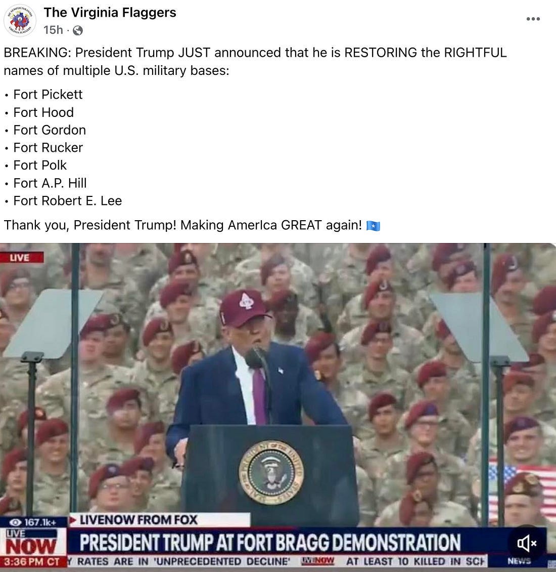 What Trump announced yesterday is just a continuation of this policy, but it looks like the Virginia Flaggers and their followers haven’t caught on yet. Here are just a few of the roughly 1,100 comments that have been posted on their Facebook page.
